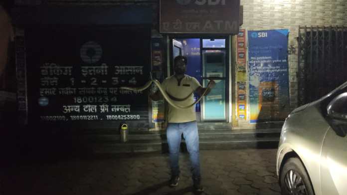 एटीएम से पैसे निकालने की कोशिश कर रहे एक व्यक्ति ने सांप को देखा और तुरंत इसकी सूचना दी।