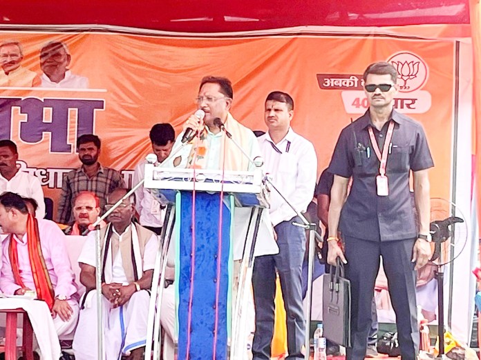 SAHIBGANJ – During the Rajmahal Lok Sabha election campaign, Chhattisgarh Chief Minister Vishnu Deo Sai spoke at a public gathering in Bhognadih, Sahibganj, showing his support for BJP candidate Tala Marandi.