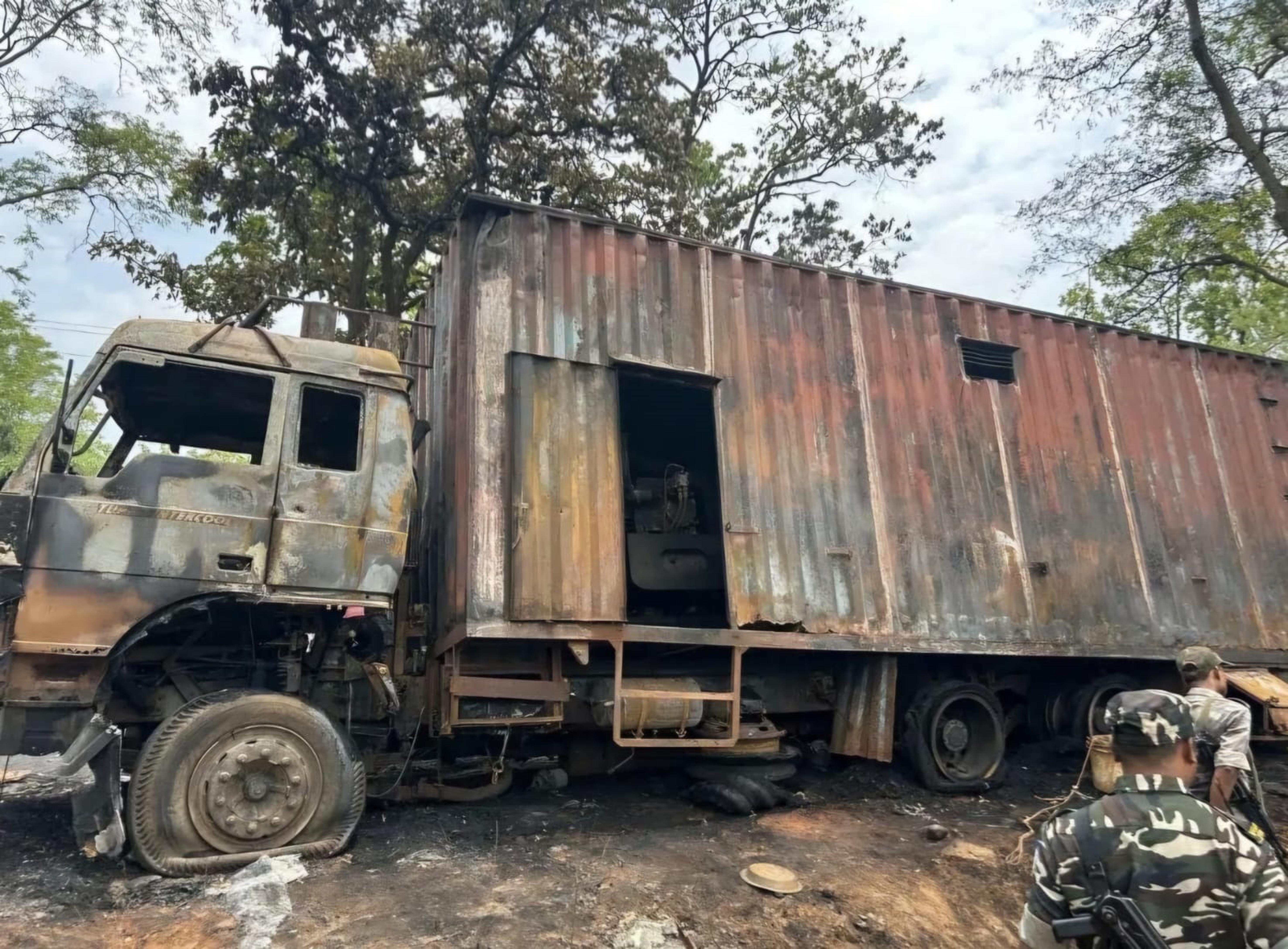 मैक्लुस्कीगंज-झारखंड राज्य-29 मई 2024-पुलिस कर्मी उस स्थान की जांच करते हैं, जहां बुधवार, 29 मई, 2024 को झारखंड के एंग्लो इंडियन शहर मैक्लुस्कीगंज में माओवादी हमले के बाद सीपीआई-माओवादी विद्रोहियों ने बीएसएनएल (भारत संचार निगम लिमिटेड) के दूरसंचार केबल ले जाने वाले एक कंटेनर में आग लगा दी थी, जिसके बाद कम से कम 1 व्यक्ति की मौत हो गई थी और कई अन्य घायल हो गए थे।