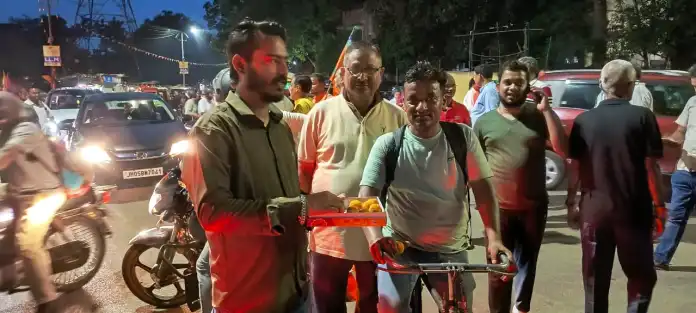 BJP celebrates Bidyut Baran Mahato’s third consecutive win in Jamshedpur with grand festivities.