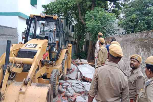 JAMSHEDPUR – The Forest Department conducted a demolition operation to remove a boundary wall constructed on encroached land near Mahatma Gandhi High School along the Chakradharpur-Chaibasa main road (NH 75 E).