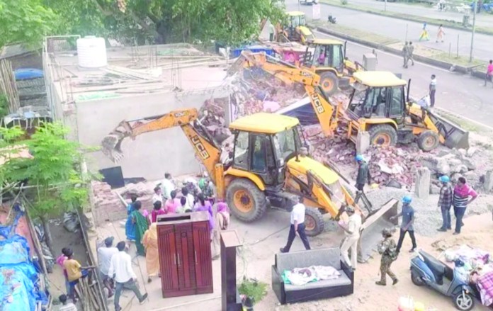 जिला प्रशासन ने कदमा मरीन ड्राइव पर अवैध निर्माण को ध्वस्त किया