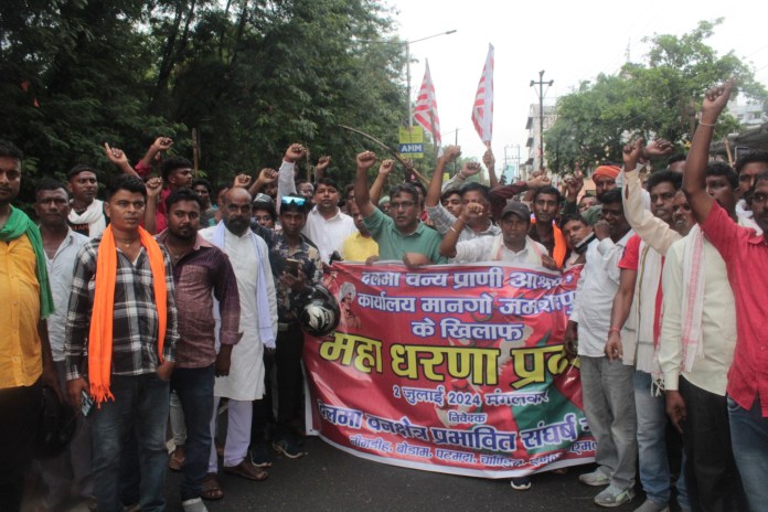 JAMSHEDPUR – Thousands of tribal and indigenous people from several blocks surrounding Dalma Wildlife Sanctuary protested at the Mango forest department office, demanding the release of Dantu Singh, arrested for allegedly killing a wild boar.