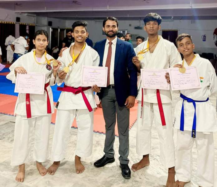 Simran Kumari, Sagar Kumar, Naivdya Pandey, and Yash Kumar all won gold medals in the Kumite category of the Under-19 division.
