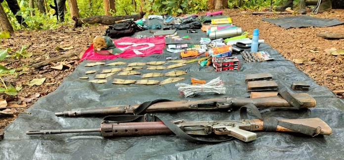 विद्रोही जब पीछे हटे तो उन्होंने हथियारों का एक जखीरा छोड़ दिया, जिसे बाद में सुरक्षा बलों ने बरामद कर लिया।