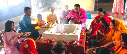 Acharya Pandit Nanpand Lal Mishra and Pandit Sujit Kumar Pathak performed the worship rituals, with Yajaman Akash Ranjan present.