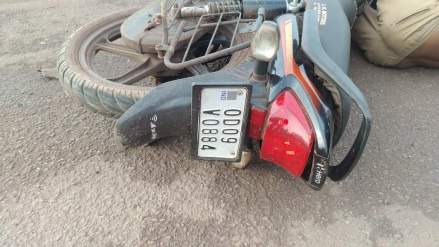The incident occurred when the motorcycle, bearing an Odisha registration number, was hit by a passenger bus traveling from Jamshedpur.