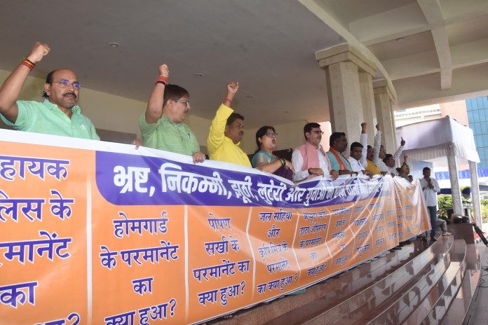 सरकार के अधूरे वादों को लेकर भाजपा विधायकों ने किया धरना