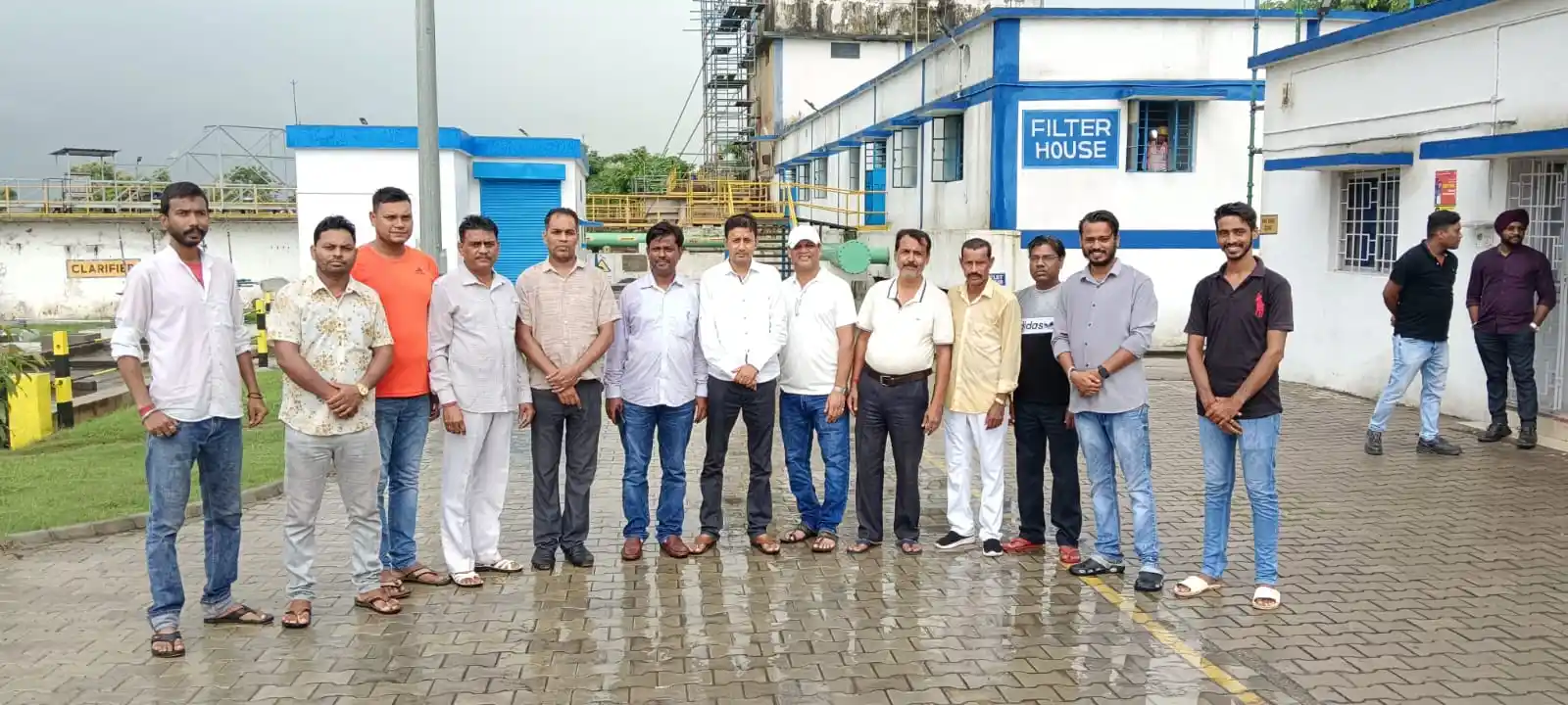 जल उपचार संयंत्र के दौरे के दौरान प्रतिनिधिमंडल ने जलग्रहण कुँए के रास्ते में एक धंसता हुआ खंभा देखा।