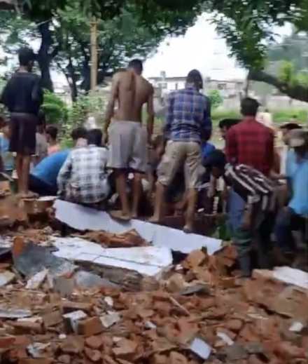 जमशेदपुर के जेम्को क्वार्टर में ईंटें इकट्ठा करते समय छत गिरने से परसुडीह के नील मुखी गंभीर रूप से घायल हो गए।
