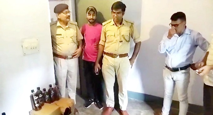 पुलिस जब ताला तोड़कर घर में दाखिल हुई तो एक कमरे में शराब की पेटियां रखी मिलीं।