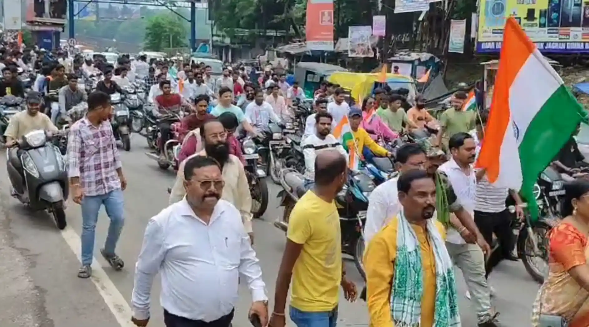 The rally then moved to the Khudiram Bose statue in Mango, where participants laid wreaths to pay their respects.
