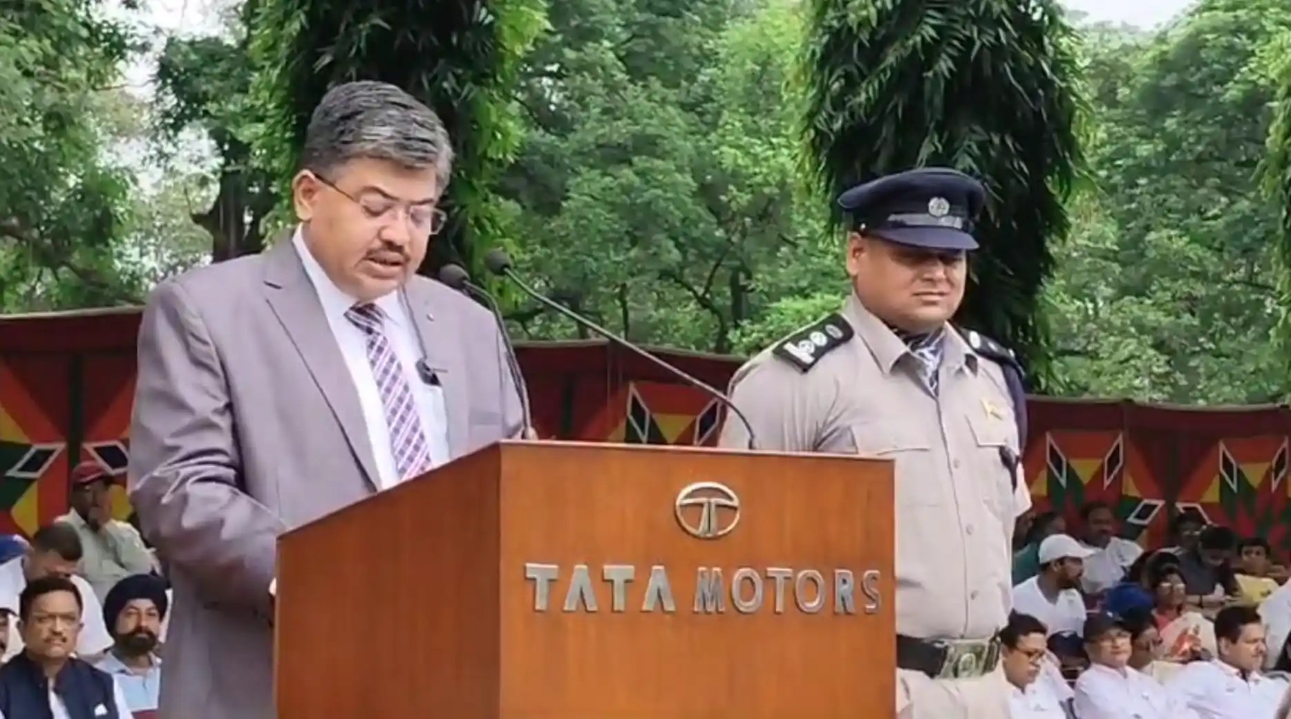 कार्यक्रम का नेतृत्व टाटा मोटर्स के प्लांट हेड रवींद्र कुलकर्णी ने किया, जिन्होंने राष्ट्रीय ध्वज फहराने से पहले एक प्रभावशाली परेड की सलामी ली।