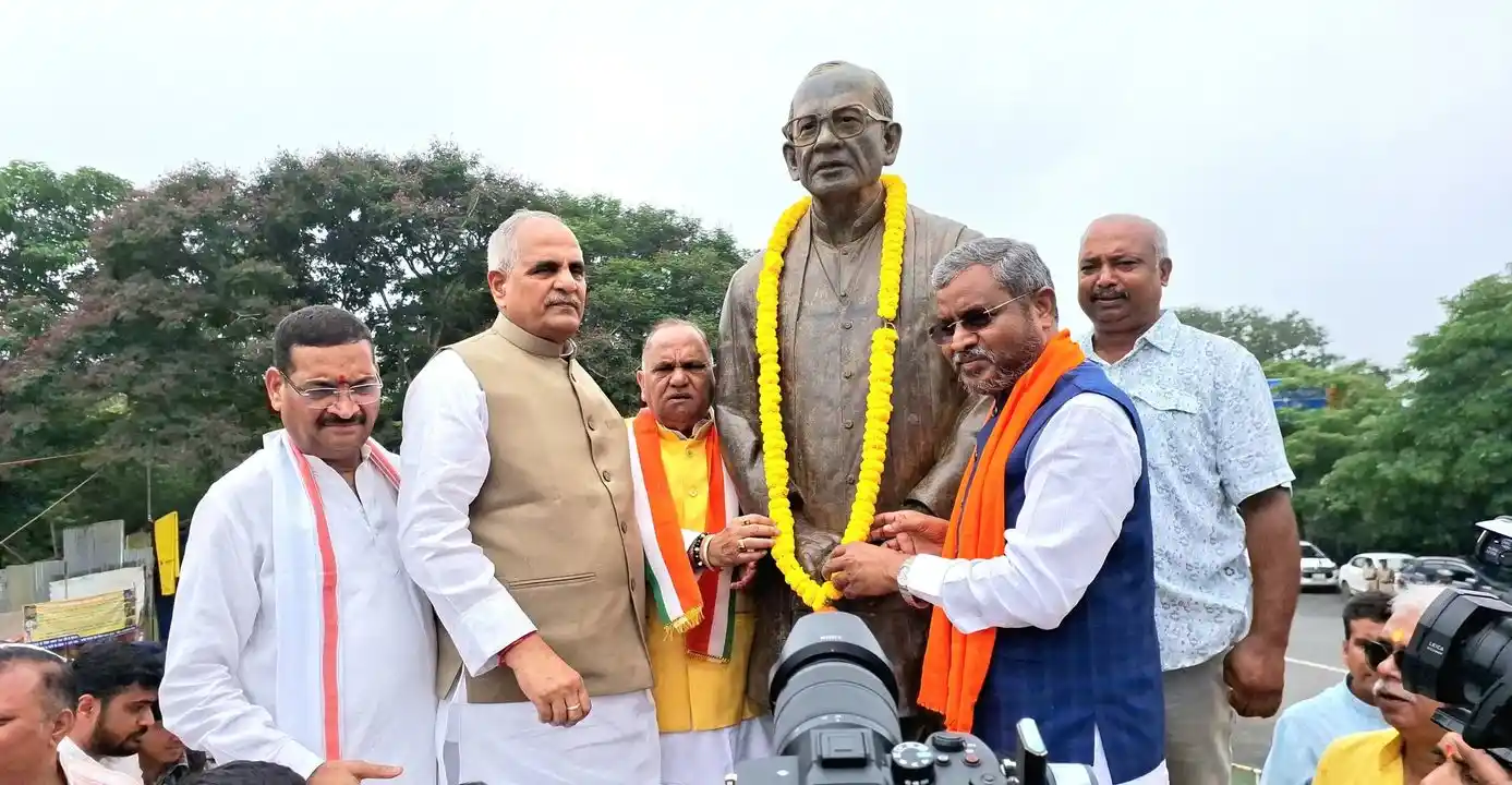 बिरसा चौक के पास भाजपा नेता कैलाशपति मिश्रा की प्रतिमा का अनावरण