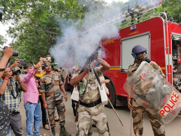 RANCHI – Jharkhand Police deployed tear gas and water cannons against Bharatiya Janata Yuva Morcha (BJYM) workers who breached barricades during a protest in Ranchi.