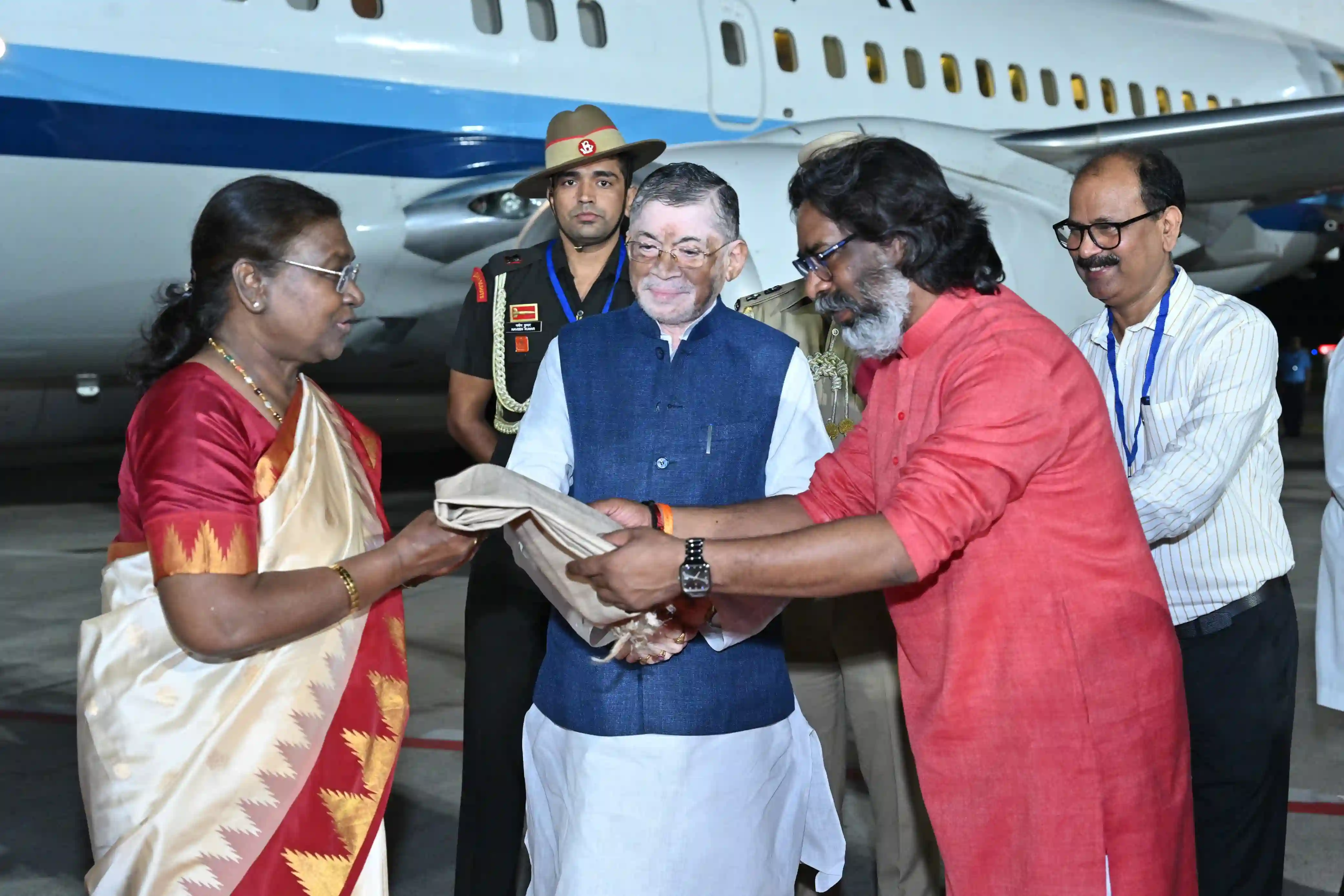 Governor Santosh Gangwar and Chief Minister Hemant Soren greeted the President at Birsa Munda Airport.