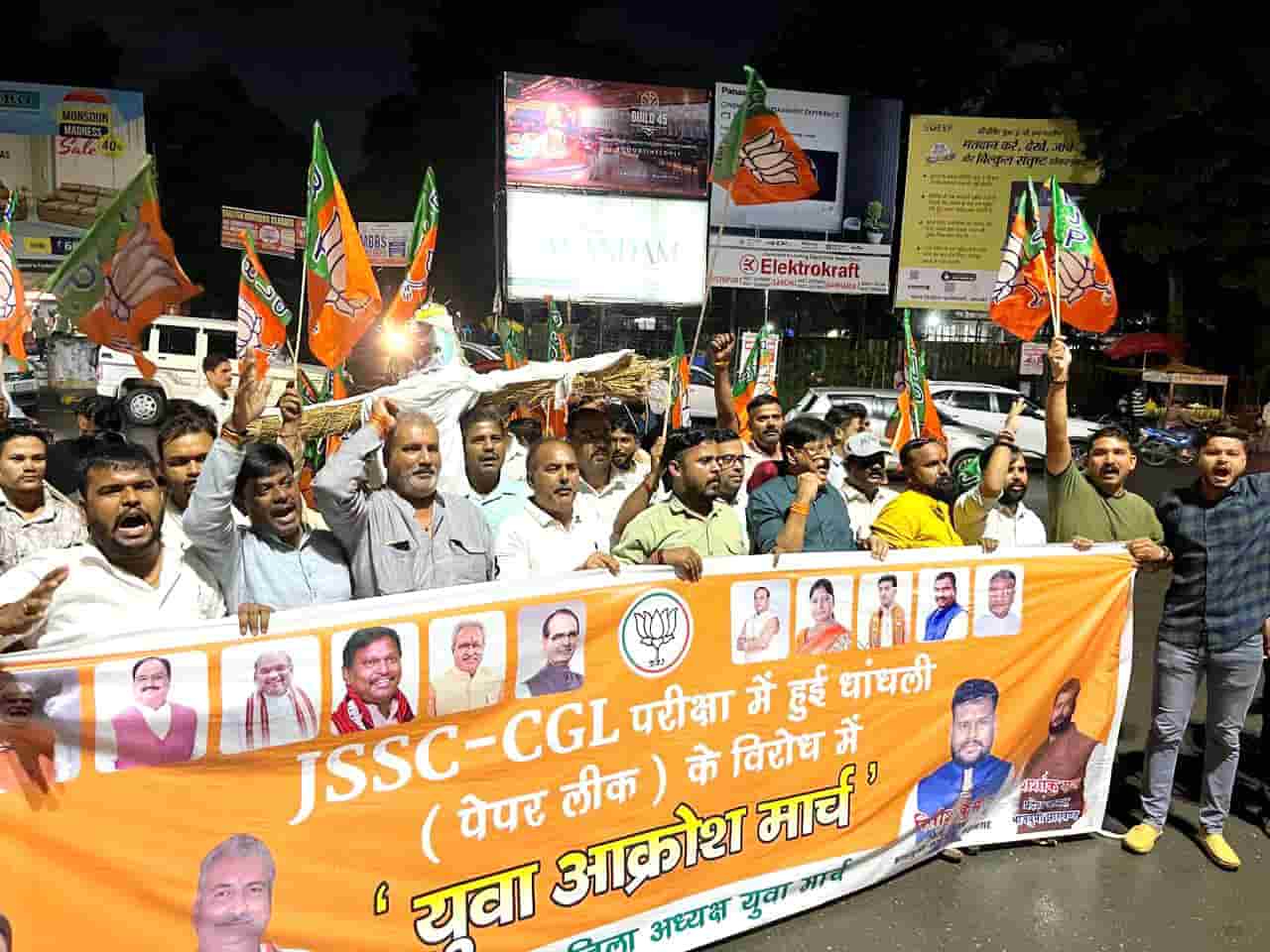 JAMSHEDPUR – Bharatiya Janata Yuva Morcha (BJYM) activists took to the streets, protesting alleged malpractices in the Jharkhand Staff Selection Commission’s Combined Graduate Level exam.