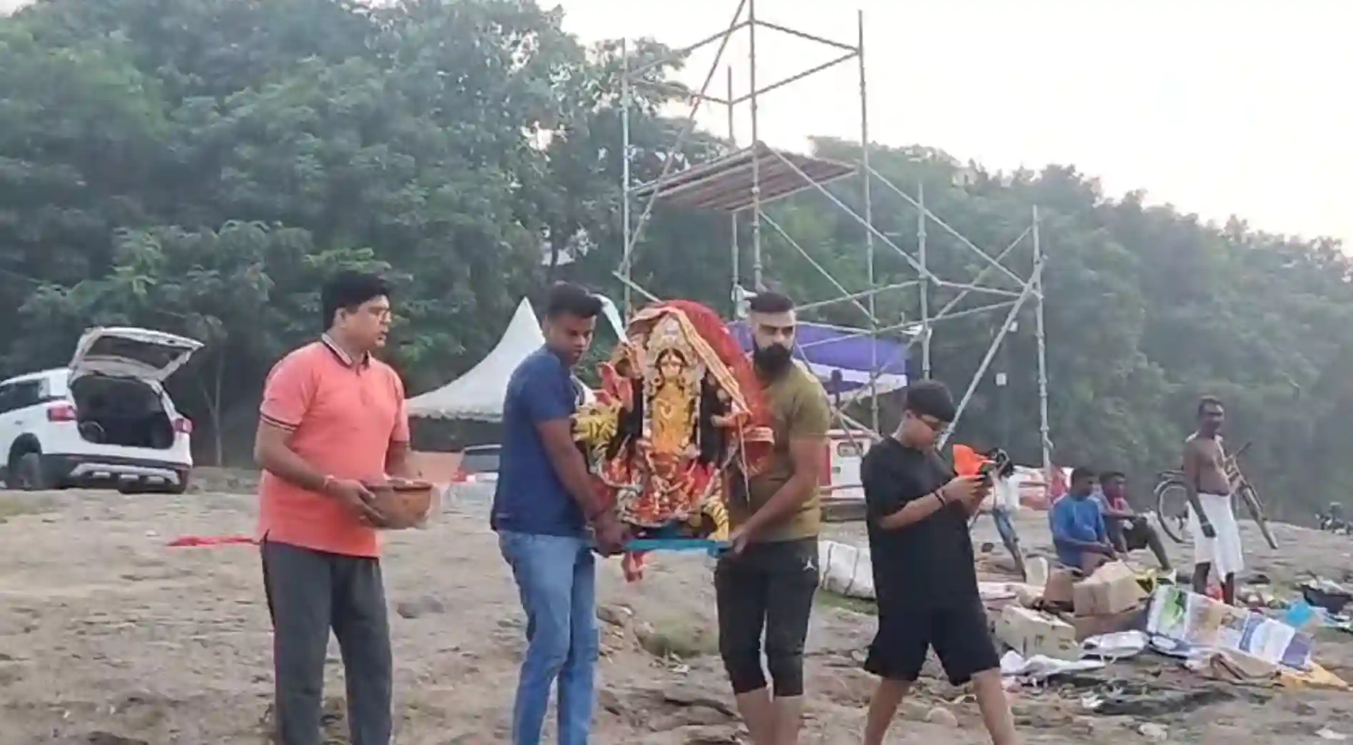 To ensure a smooth and eco-friendly immersion process, the Jamshedpur Notified Area Committee (JNAC) has set up designated tanks along the riverbank. These tanks are meant for the immersion of idols and worship materials to prevent pollution of the river.
