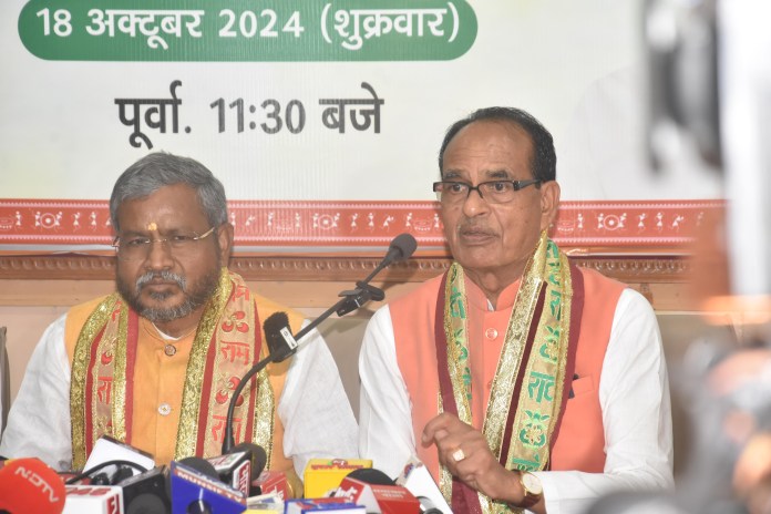 Notable figures present at the press meet included Union Agriculture Minister Shivraj Singh Chouhan and Himanta Biswa Sarma.