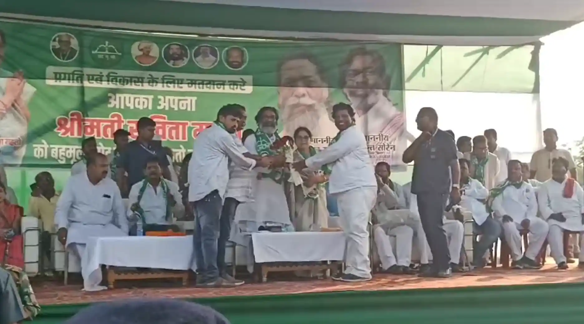 Thousands gather as Savita Mahato makes emotional appeal, CM Hemant Soren slams BJP-AJSU alliance.