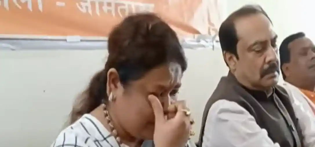 The BJP leader became emotional during a press conference in Jamtara.