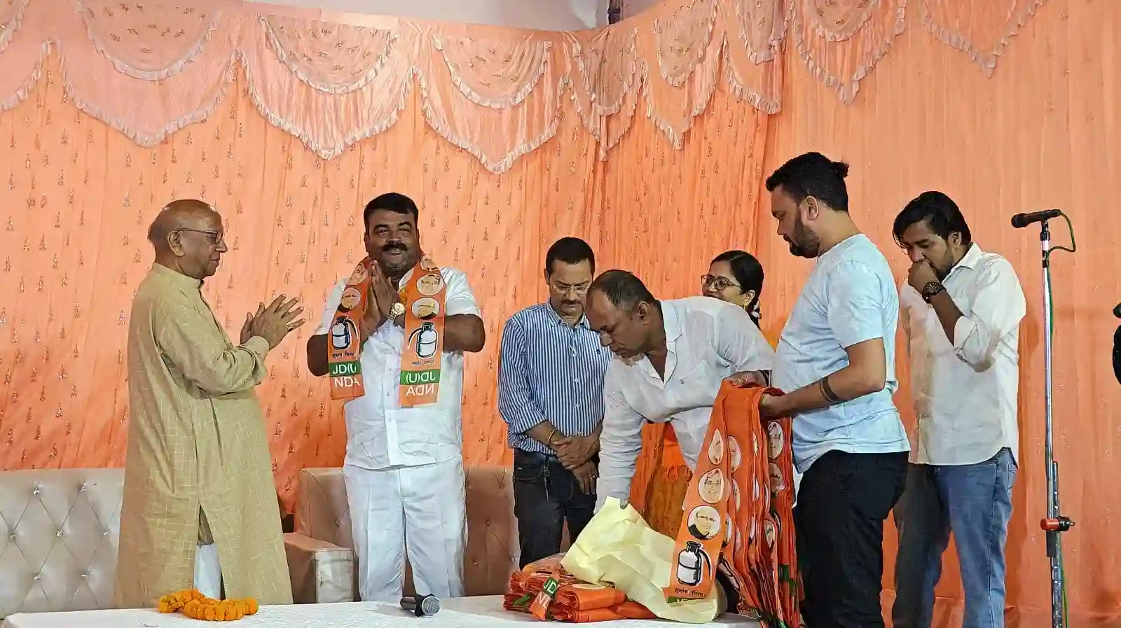 During an event at Rajasthan Bhawan, Bablu Rai received the NDA’s ceremonial scarf from Saryu Rai himself as he joined the JDU alongside several other notable individuals from the Jamshedpur region.