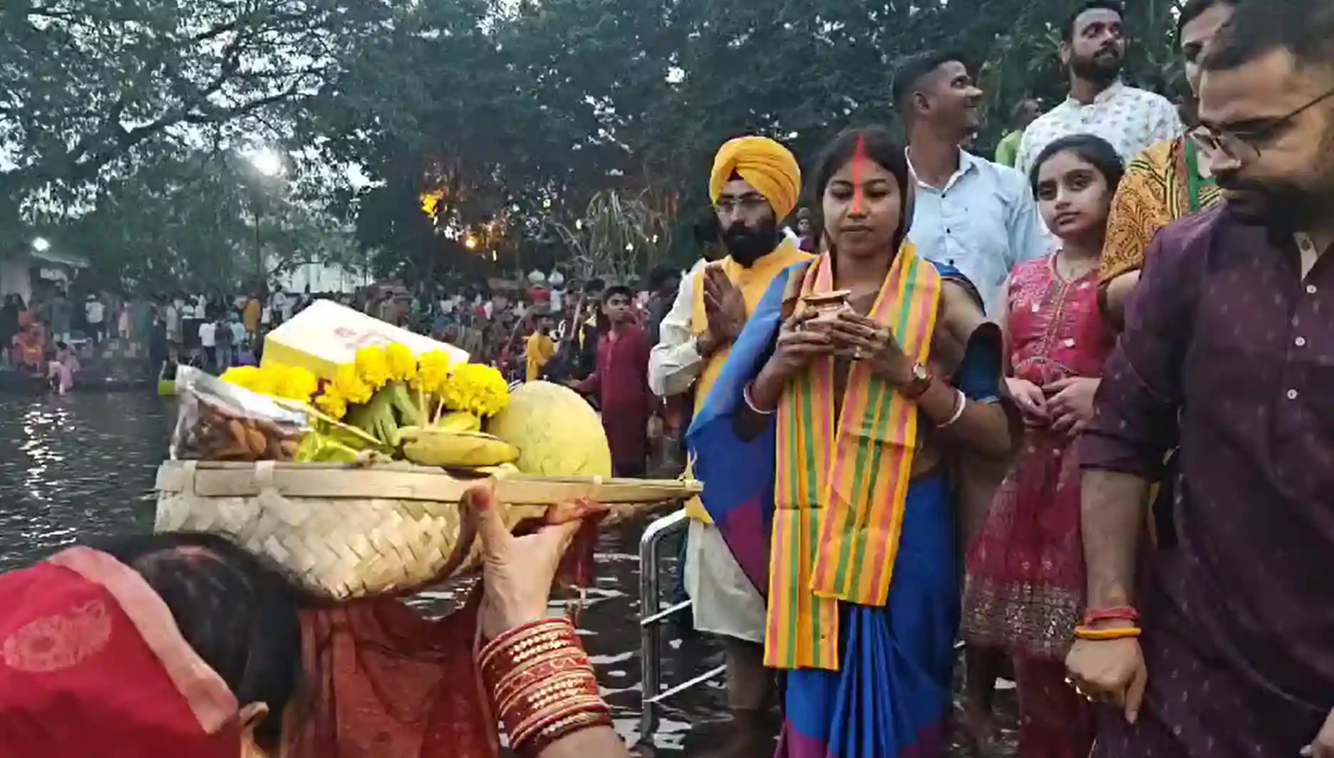 Among the devotees was BJP candidate for Jamshedpur East, Purnima Das Sahu, who participated in the ritual with hundreds of locals, offering Arghya to the Sun God.
