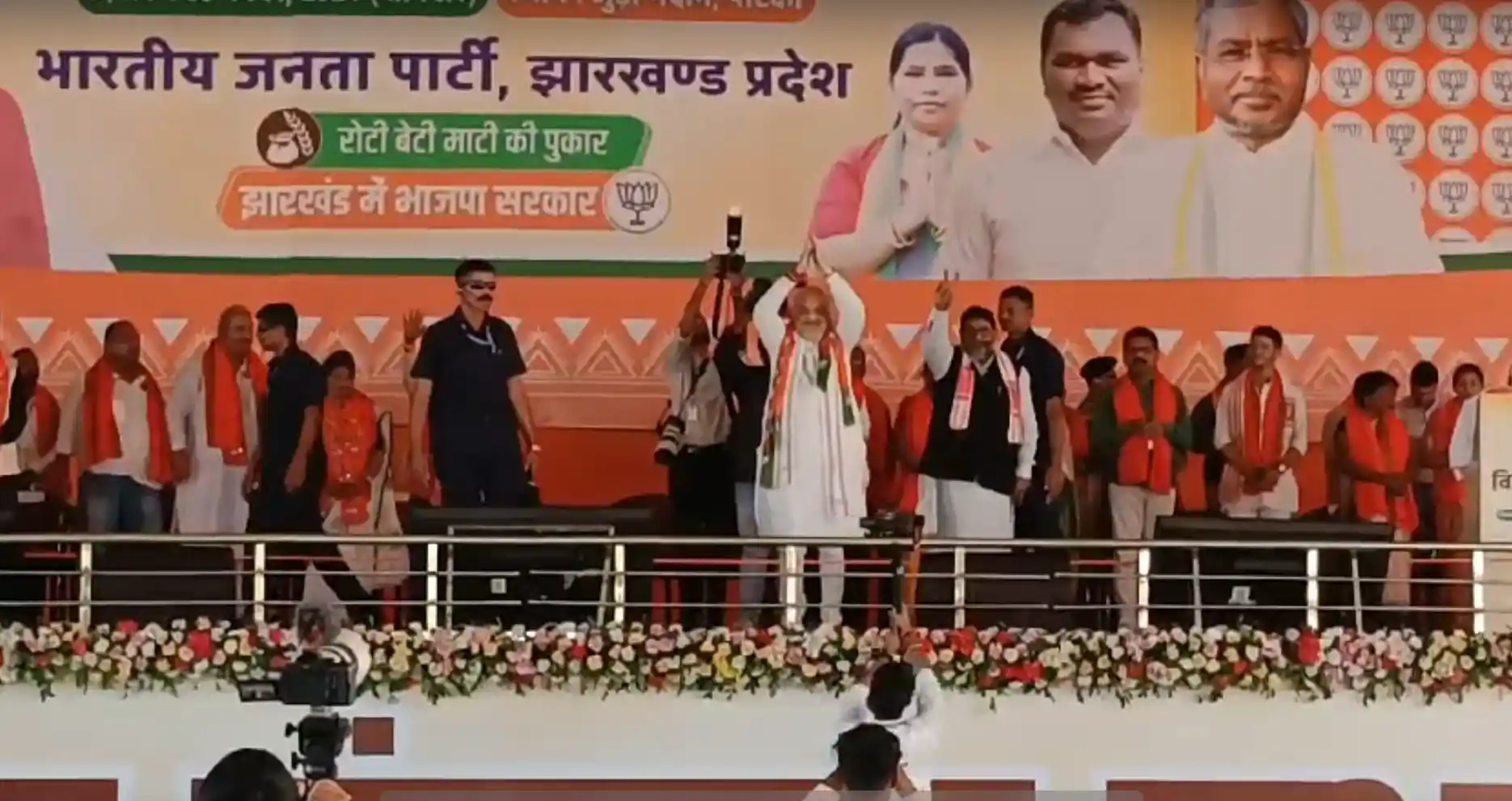 पूर्व केंद्रीय मंत्री और झारखंड के पूर्व मुख्यमंत्री अर्जुन मुंडा और वरिष्ठ भाजपा नेताओं के साथ शाह ने अपना भाषण “भारत माता की जय” और “वंदे मातरम” के गगनभेदी नारों के साथ शुरू किया, जो समर्थकों की भीड़ से गूँज उठा।