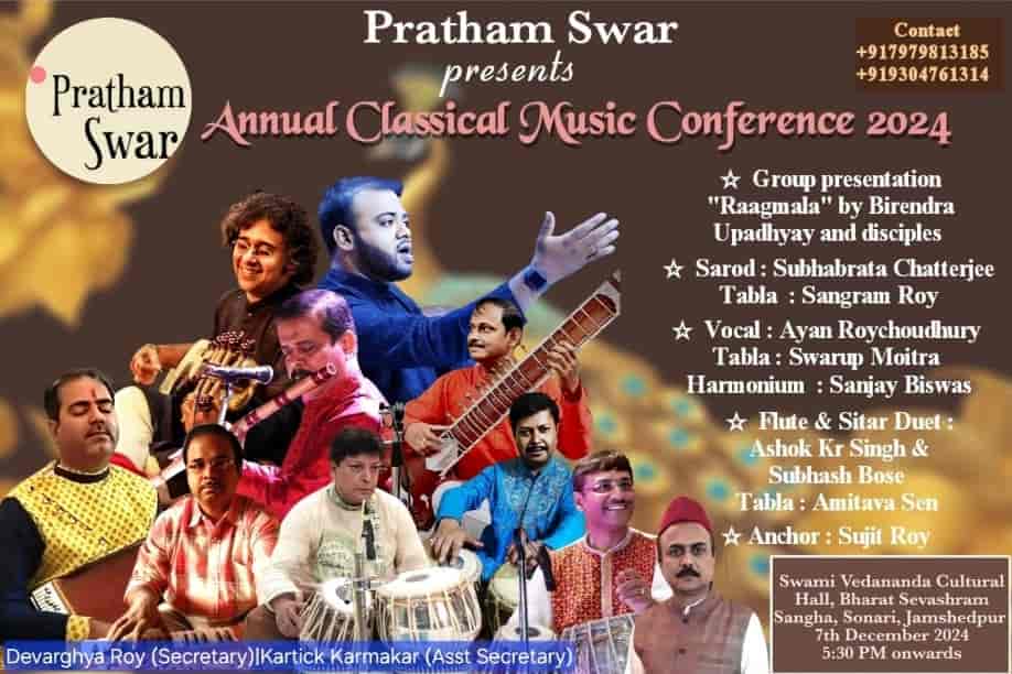 JAMSHEDPUR – Pratham Swar, a Jamshedpur-based classical music organization, will host its second annual Classical Music Conference on December 7, 2024, at Swami Vedananda Cultural Hall, Bharat Sevashram Sangha.