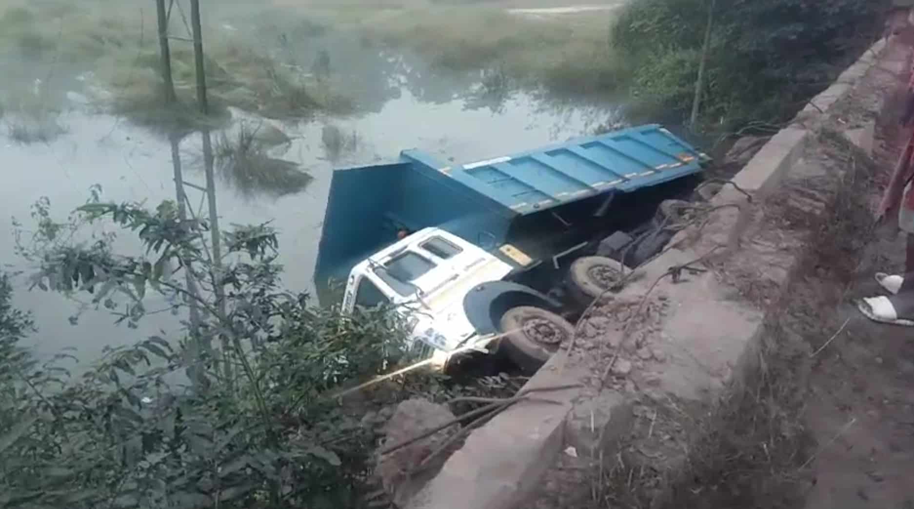 Truck Plunges Off Bridge in Seraikela; Driver Escapes with Minor Injuries