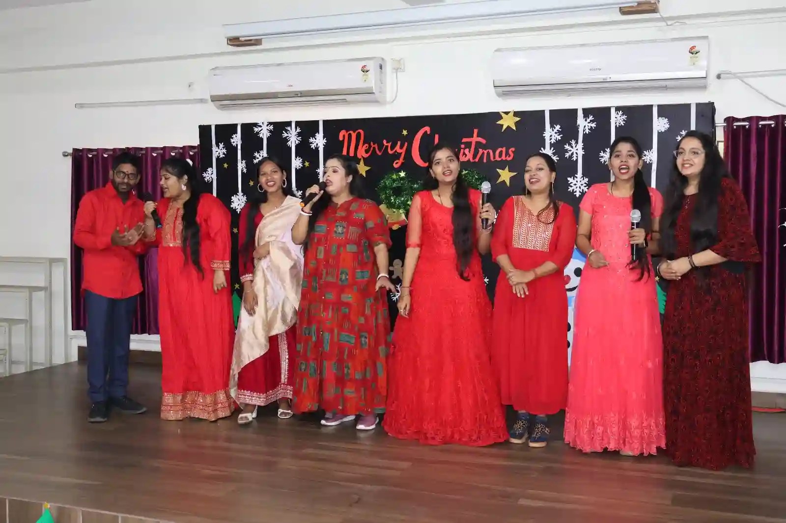 In the cultural segment, Amrita Chaudhary led a team including Priya Poddar, Rupa, Swati, Arpita, Goodsimran, Srishti, Megha, Swastika, and Ayush in singing melodious Christmas carols. Eliza captivated the audience with a heartfelt poem. Megha and Akanksha followed with an energetic PT presentation.