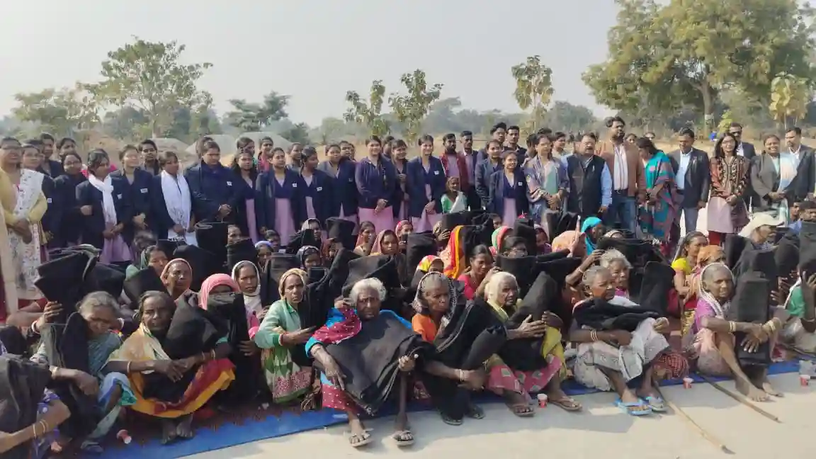 Local villagers received blankets from Rambha Educational Group during Makar-Tusu celebrations.