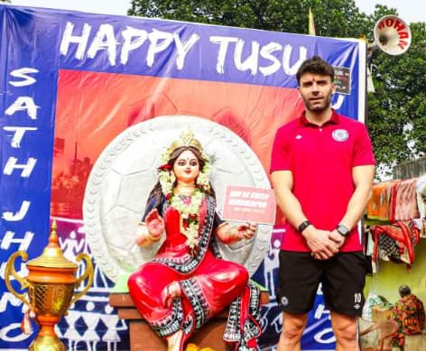 JAMSHEDPUR – Jamshedpur FC captain Javi Hernandez joined fans at Bhalubhasa Mukhi Samaj Basti for a unique Tusu Puja celebration combining football and tradition.