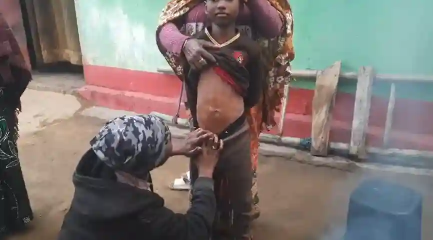 The practice involves gently pressing a heated iron rod, known locally as “Cheendi,” on the abdomen of children aged 6 to 12. According to local beliefs, this ritual strengthens children’s immunity and wards off various illnesses. Devotees view it as an act of devotion, completed with faith in its health benefits.