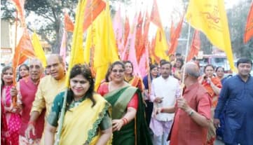 The evening procession began at 4:31 PM from the temple premises. Moreover, 1,501 devotees carried ceremonial flags during the march.