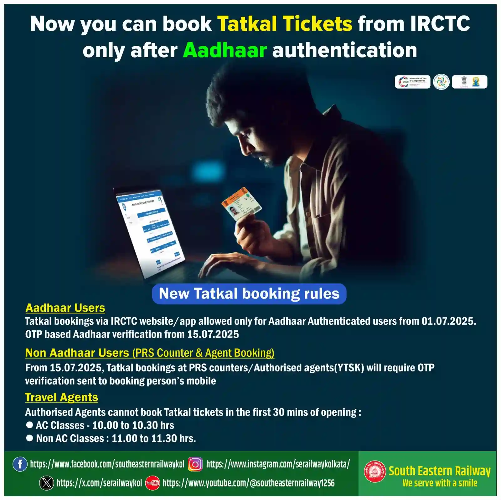 JAMSHEDPUR – Indian Railways introduces stricter authentication measures for Tatkal train ticket bookings through IRCTC platforms starting July 2025.