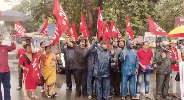 Joint trade unions called for the nationwide bandh across the country. Workers gathered at Aam Bagan area carrying red flags in solidarity. Moreover, protesters marched through streets despite heavy rainfall conditions.