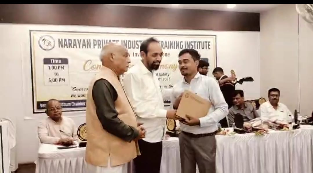जमशेदपुर : नारायण प्राइवेट इंडस्ट्रियल ट्रेनिंग इंस्टिट्यूट द्वारा पोस्ट ग्रेजुएट डिप्लोमा इन इंडस्ट्रियल सेफ्टी मैनेजमेंट के विद्यार्थियों के लिए भव्य दीक्षांत समारोह का आयोजन सिंहभूम चैंबर ऑफ कॉमर्स एंड इंडस्ट्री, भालोटिया हॉल, साउथ पार्क में किया गया। इस अवसर पर 70 छात्रों को प्रमाण पत्र प्रदान किए गए।