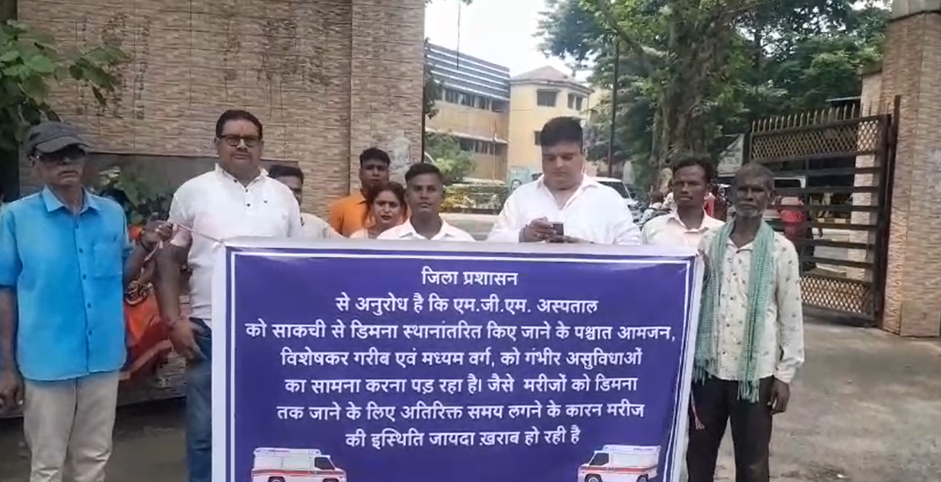जमशेदपुरः जमशेदपुर के एमजीएम अस्पताल को साकची से डिमना स्थानांतरण किये जाने से आम जनता को हो रही परेशानी को लेकर स्थानीय लोगों ने मंगलवार को उपायुक्त कार्यालय के समक्ष प्रदर्शन किया। उपायुक्त और सिविल सर्जन को ज्ञापन भी सौंपा गया।