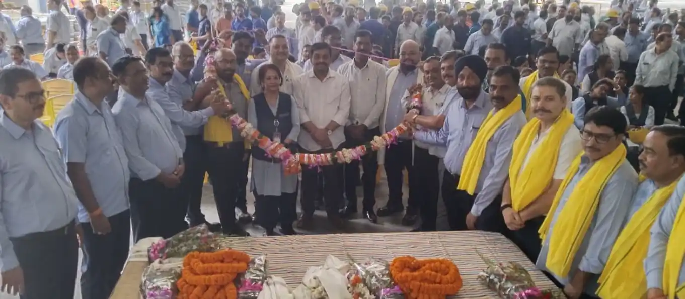 Later at 11:30 a.m., another ceremony was held at the World Truck division. Here, the union leaders and company officials were felicitated with traditional attire and garlands. Vehicle Factory head Manish Verma, along with Sandeep Chouksey, Selva Raj, and Sujit Jha, represented management. Union vice-president R.R. Dubey delivered the welcome speech, and Manoj Kumar Singh conducted proceedings.