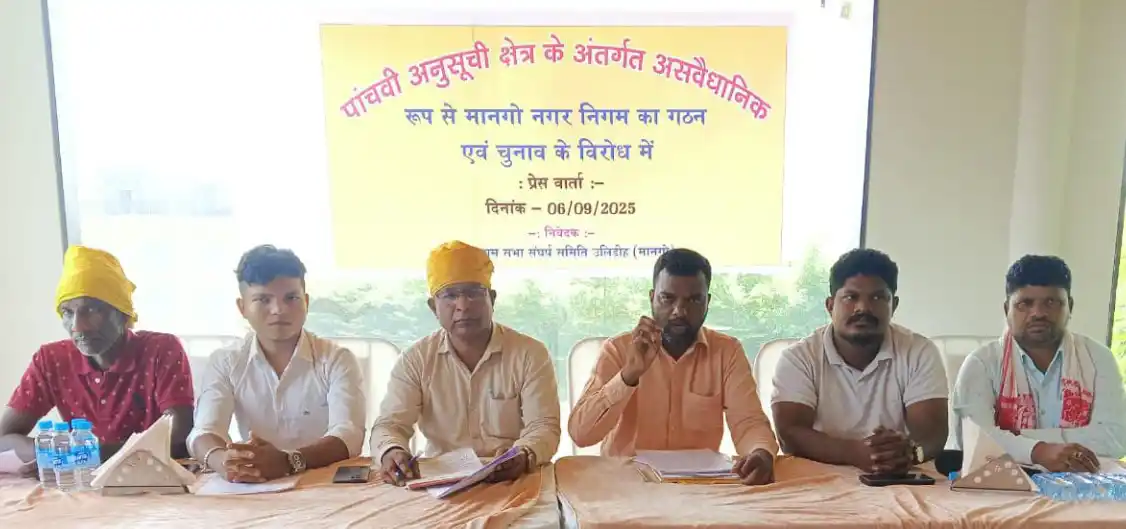 JAMSHEDPUR – The formation of Mango Municipal Corporation was termed unconstitutional by the Joint Gram Sabha Sangharsh Samiti of Ulidih, Mango. The group held a press conference at Baliguma, NH-33, on Saturday demanding cancellation of elections and recognition of Gram Sabha-based governance.