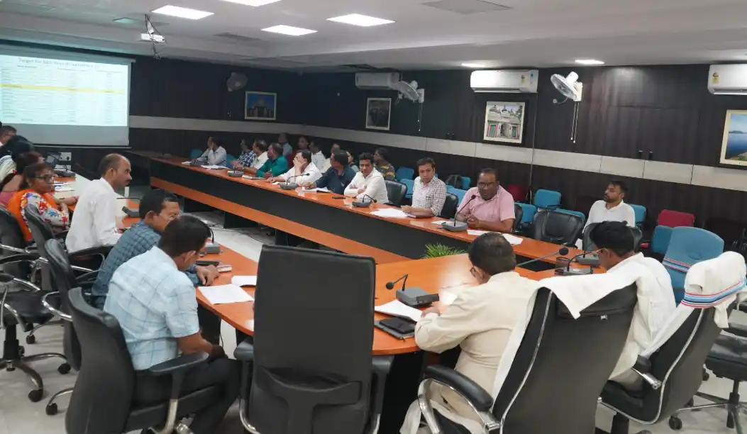 A review meeting of the District Coordination Committee was held at the Collectorate auditorium under the chairmanship of Deputy Development Commissioner Nagendra Paswan, following directives of Deputy Commissioner K. Satyarthi. Civil Surgeon Dr. Sahir Pal, DRCHO Dr. Ranjit Panda, DSE Ashish Pandey, MOICs, CDPOs, and officials from education, health, and social welfare departments were present.