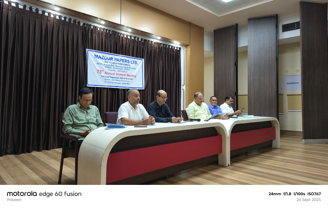 जमशेदपुर में मजदूर पेपर्स लिमिटेड की 78वीं AGM, नित्यानंद सिंह व बी.के. डिंडा फिर बने निदेशक, बारी मेंशन के जीर्णोद्धार पर दिया गया फीडबैक