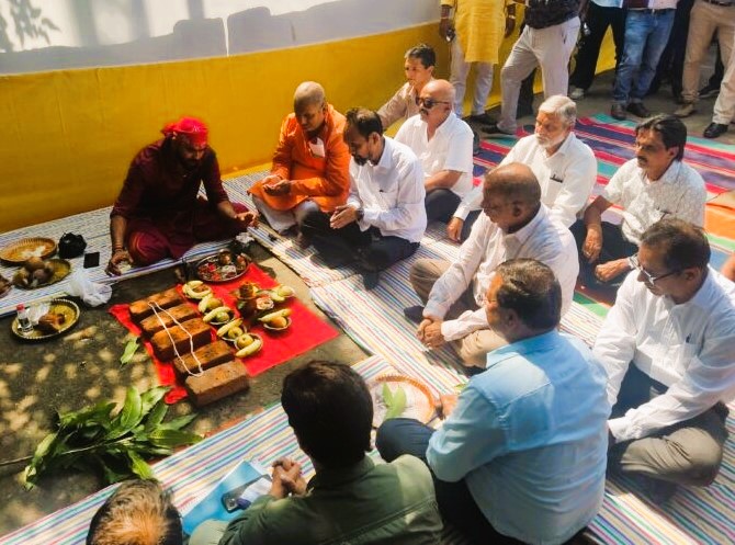 सादे समारोह में भूमि पूजन कर स्टेशन के कायाकल्प की प्रक्रिया की विधिवत शुरुआत कर दी गई।