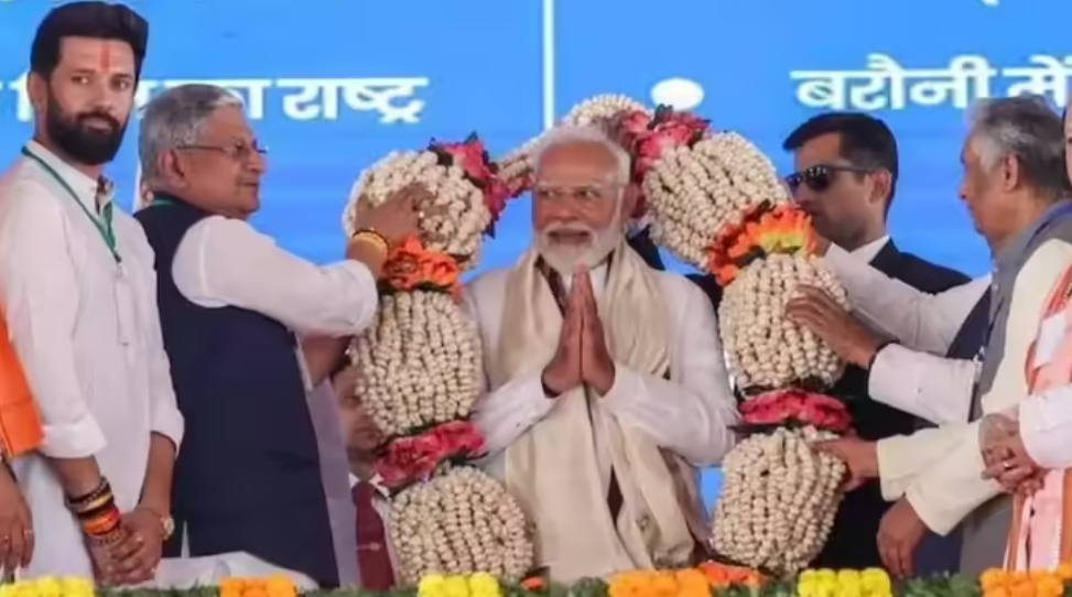 समस्तीपुर में पीएम मोदी को मखाने की माला