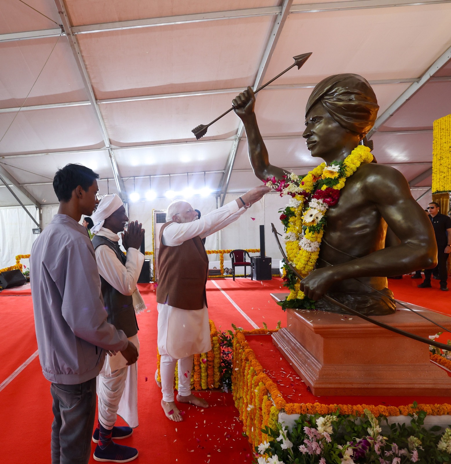 मोदी ने कहा कि भाजपा और राजग सरकारों ने हमेशा सक्षम, प्रतिभाशाली और जनसेवा के प्रति समर्पित आदिवासी नेताओं को आगे बढ़ाया है। उन्होंने कहा कि छत्तीसगढ़ के मुख्यमंत्री विष्णुदेव साय, ओडिशा के मुख्यमंत्री मोहन चरण माझी, अरुणाचल प्रदेश के मुख्यमंत्री पेमा खांडू, नगालैंड के मुख्यमंत्री नेफ्यू रियो, मध्य प्रदेश के राज्यपाल मंगूभाई पटेल, सभी उस परिवर्तनशील राजनीतिक यात्रा के प्रतीक हैं जिसमें आदिवासी समाज नेतृत्व की भूमिका निभा रहा है। प्रधानमंत्री ने यह भी बताया कि केंद्र में सबार्नंद सोनोवाल, जो आदिवासी समुदाय से आते हैं, पूरे शिपिंग मंत्रालय का नेतृत्व कर रहे हैं।