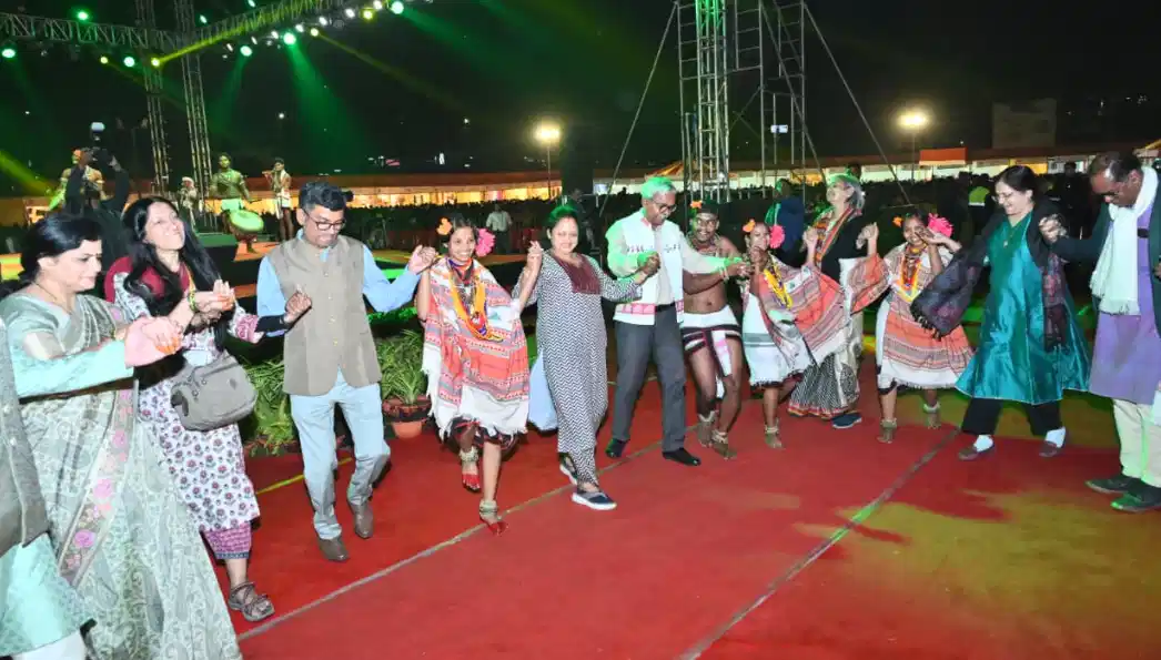 Garima Ekka and Arjun Lakra presented captivating Nagpuri tunes. Meanwhile, audiences thronged the Atithi hospitality stall. Tribal cuisine prepared by home cooks delighted visitors.