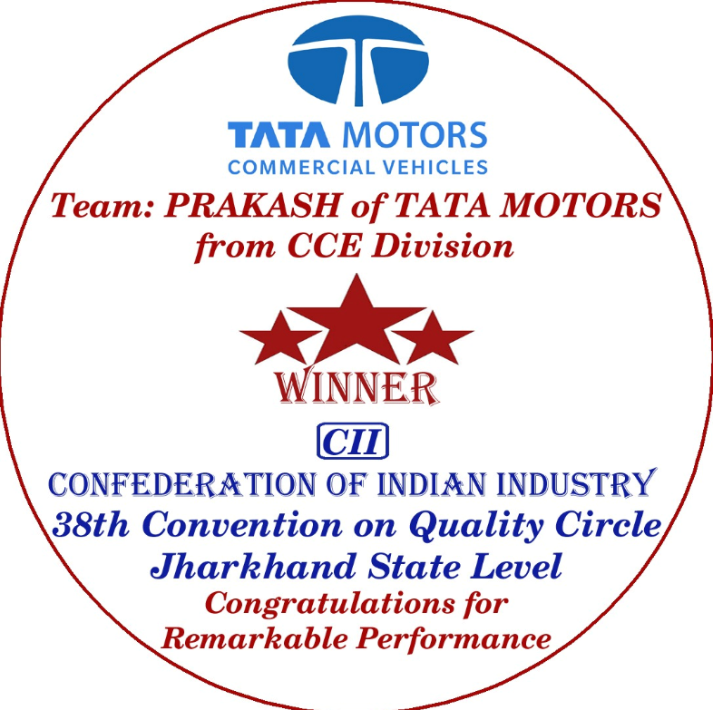 गौरतलब हो कि विगत 3 व 4 नवंबर को आदित्यपुर स्थित क्रूज होटल में कनफेडरेशन आफ इंडियन इंडस्ट्रीज के 38 वें गुणवत्ता चक्र सम्मेलन में टाटा मोटर्स के सीसीई डिवीजन की टीम को विजेता घोषित किया गया था।