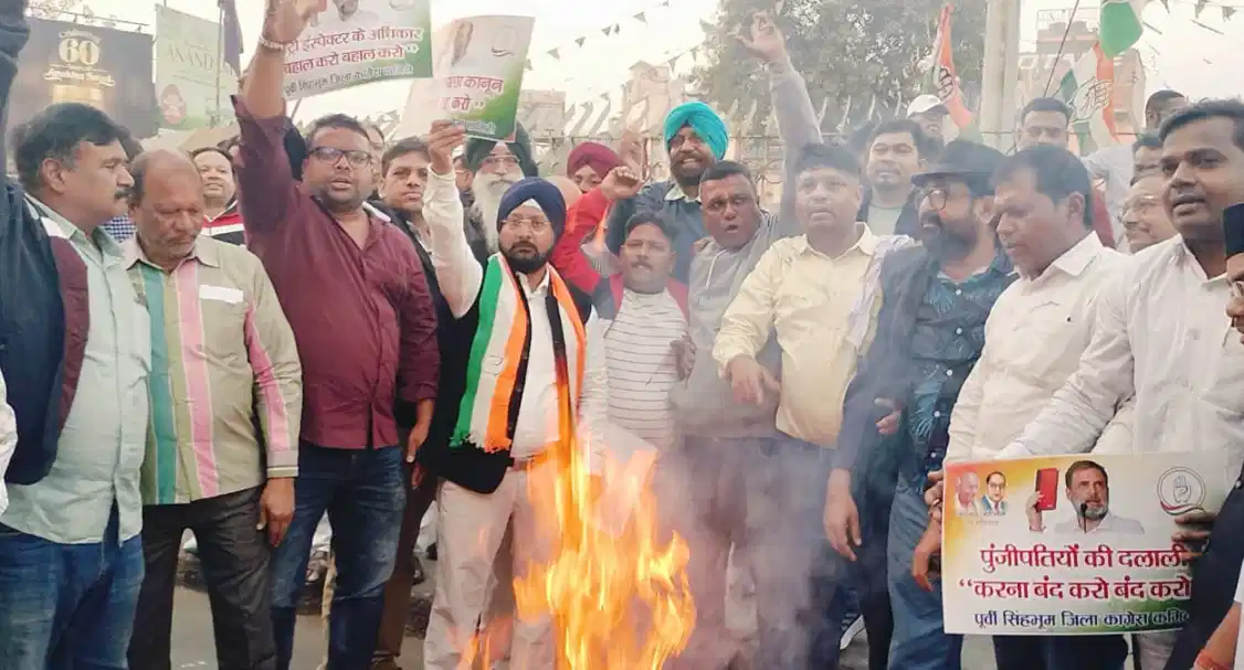 Congress Burns Effigies Protesting Labour Law Changes in Jamshedpur