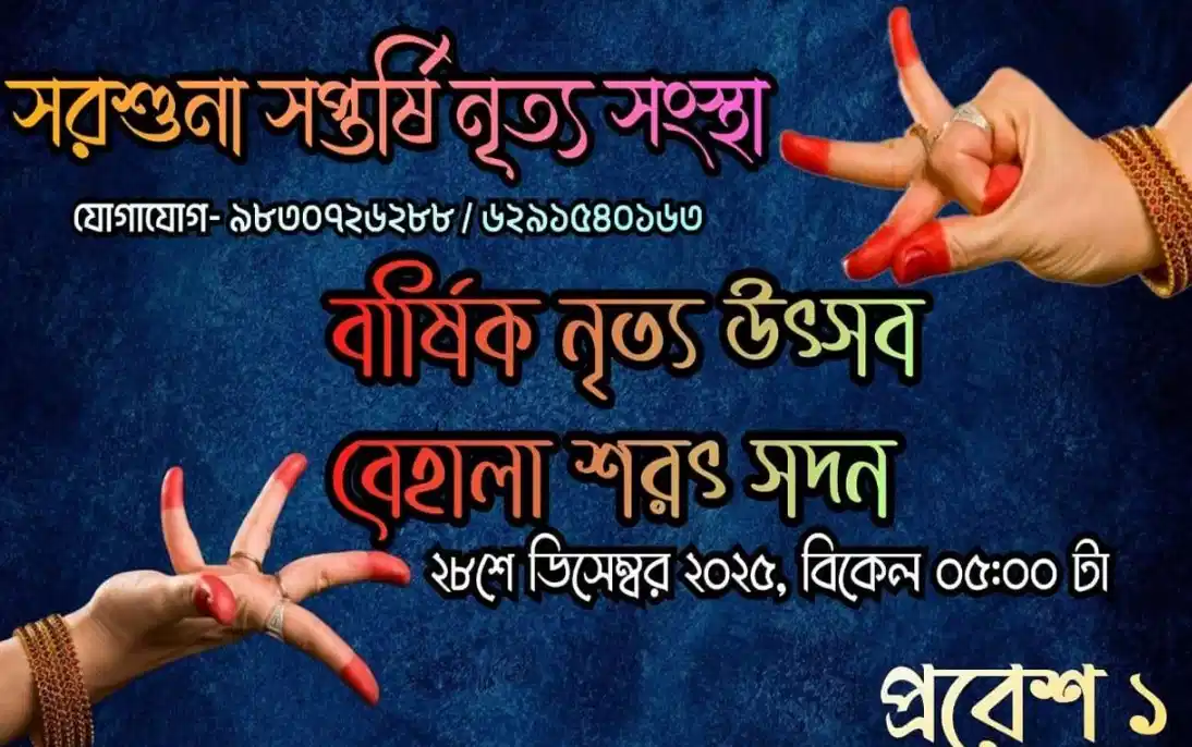 - Sarsuna Saptarshi Nritya Sikhsha Kendra presents festival on December 27-28